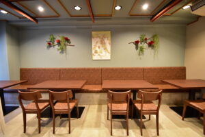 オーダーメイドのテーブルは予約状況に合わせて、単独、もしくは連結可能な加工を施し、オーナー様のきめ細やかな対応をサポートします。