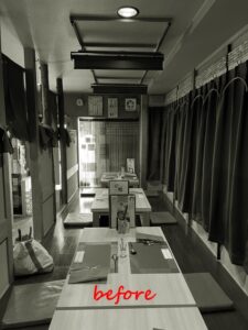 掘りこたつ式のテーブルエリアを取り払い、土足で椅子式に一新。
