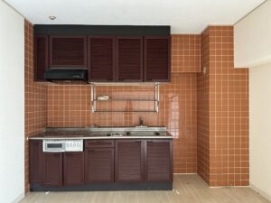 リフォーム前に残されていた懐かしい照明や、あえて残したキッチンの壁タイル。