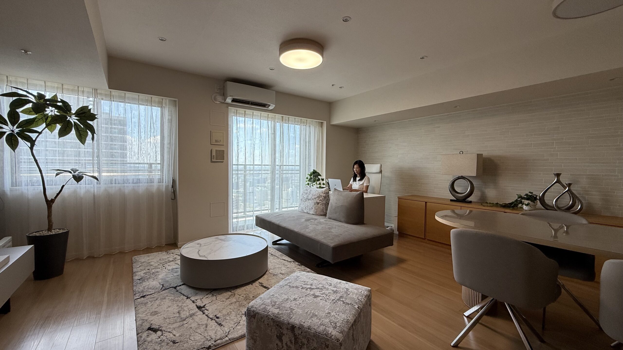 家具は低めのフォルムで統一し、空間に広がりを感じさせるデザインを採用。