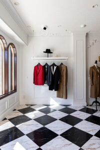 お客様はモデル経験を活かした卓越したセンスで、尾州産の中でも特に希少な高級生地を厳選し、国内屈指の工房と連携して “本当に良いものを求める女性” のためのスーツを仕立てています。その唯一無二の世界観を、今回の新店舗にも余すことなく表現するため、プラン確定までは何度も打ち合わせを重ねました。
