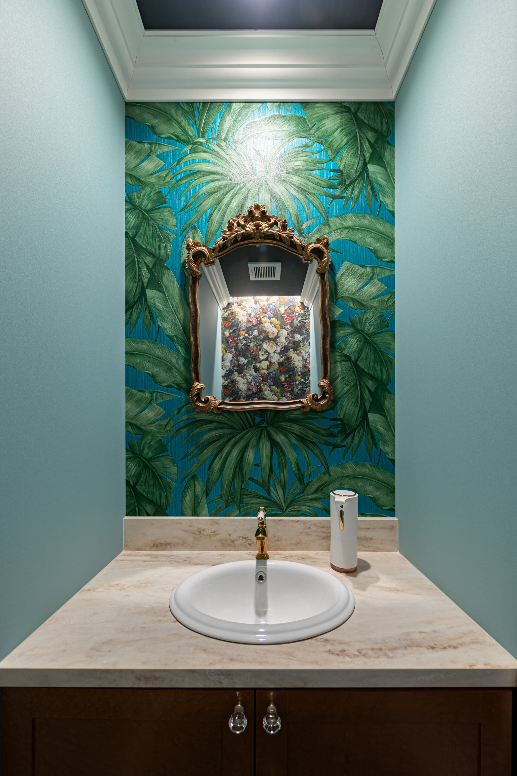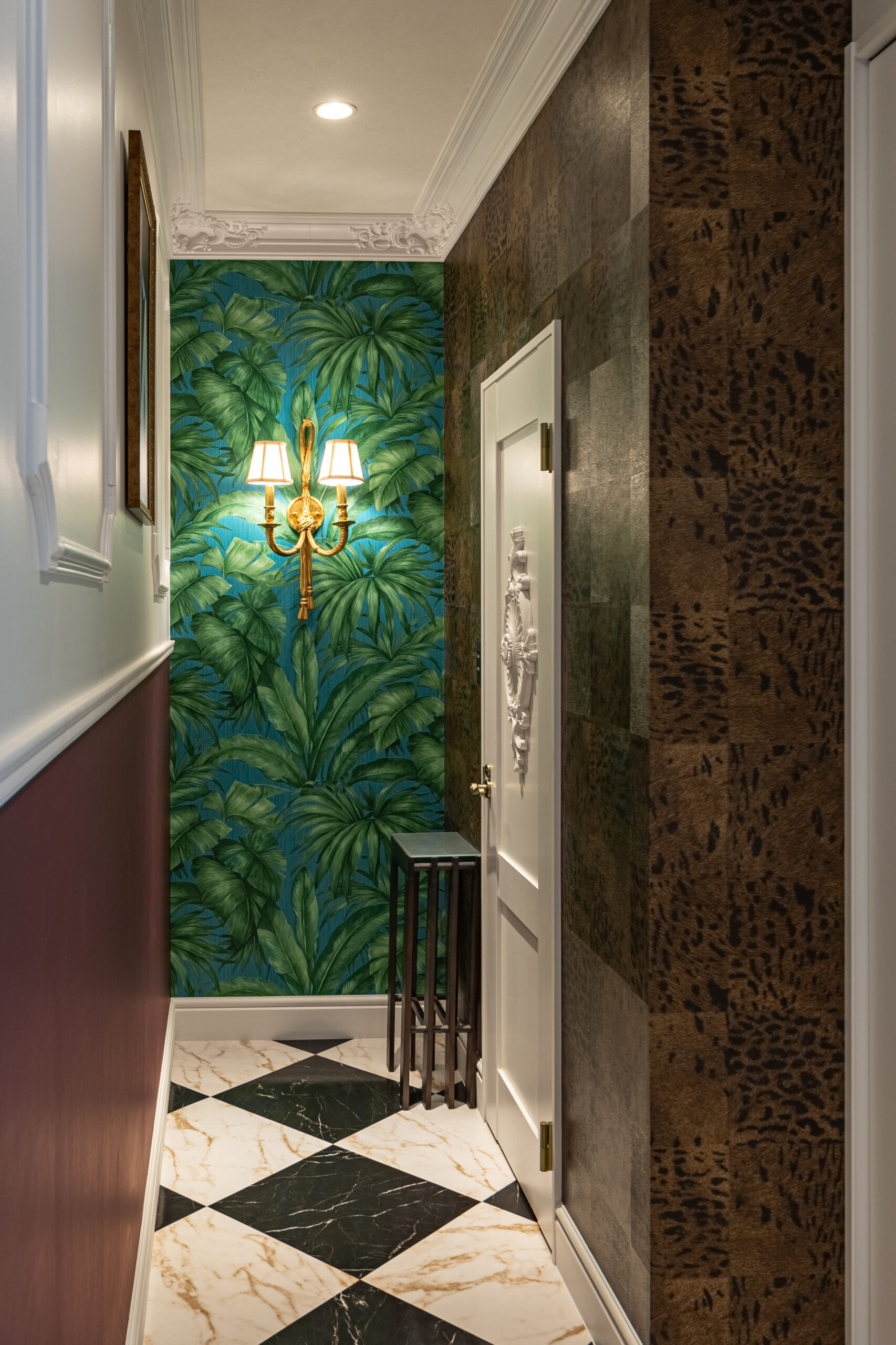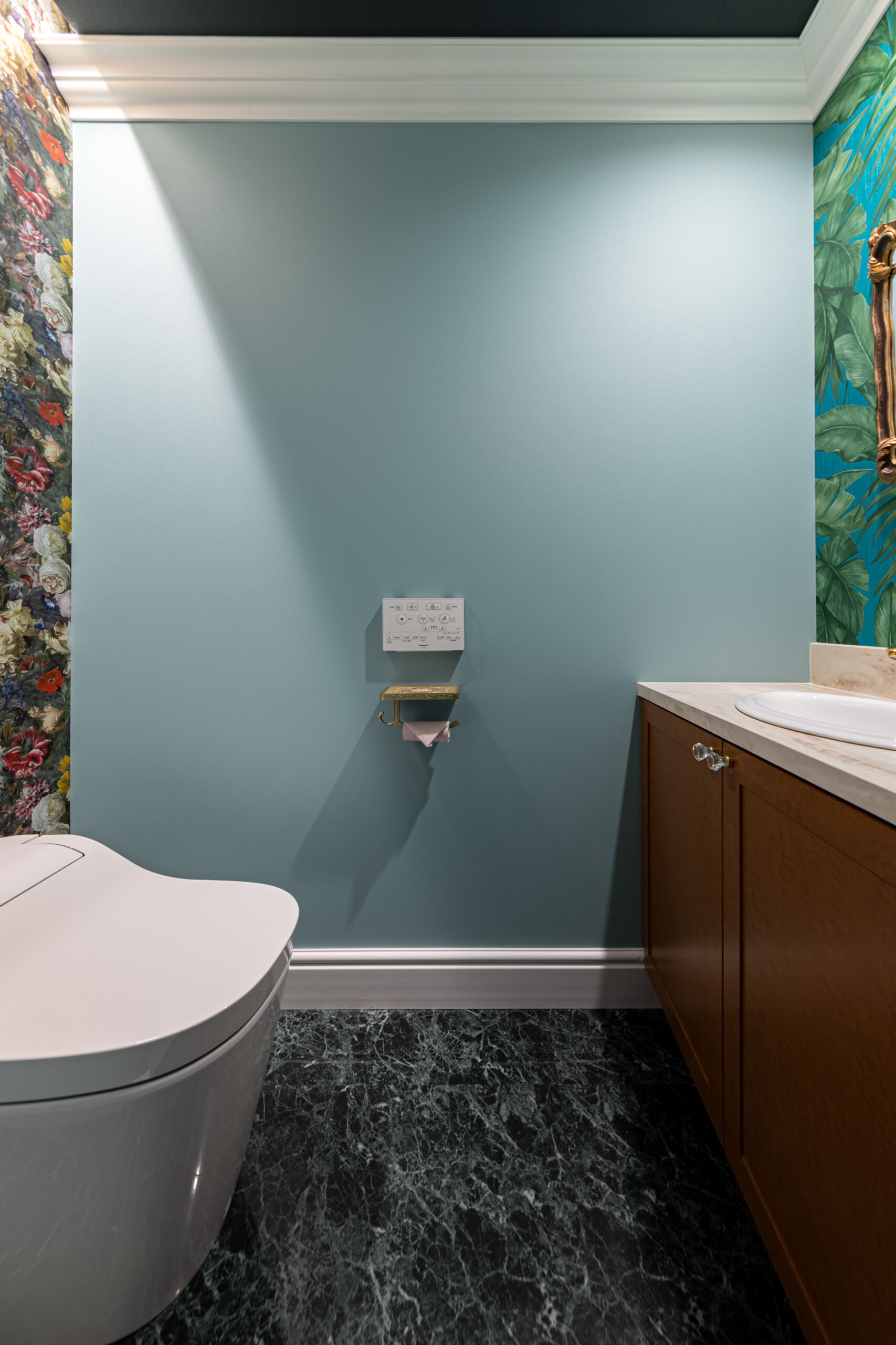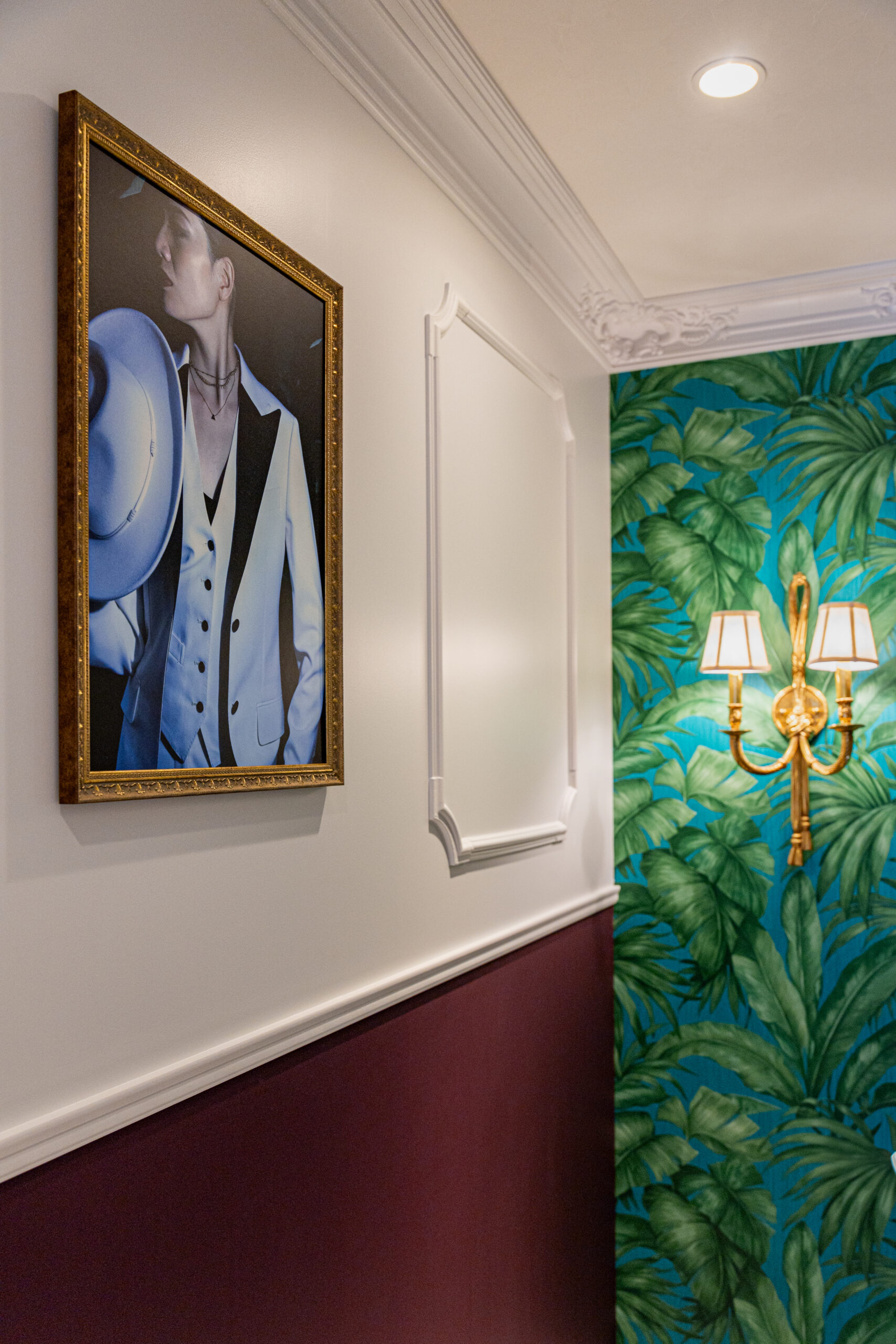 仕上がった新店舗は、細部まで美意識が貫かれた空間です。舞台の幕を思わせる深紅のカーテン、クラシカルなモールディング、透明感あふれるシャンデリア…。