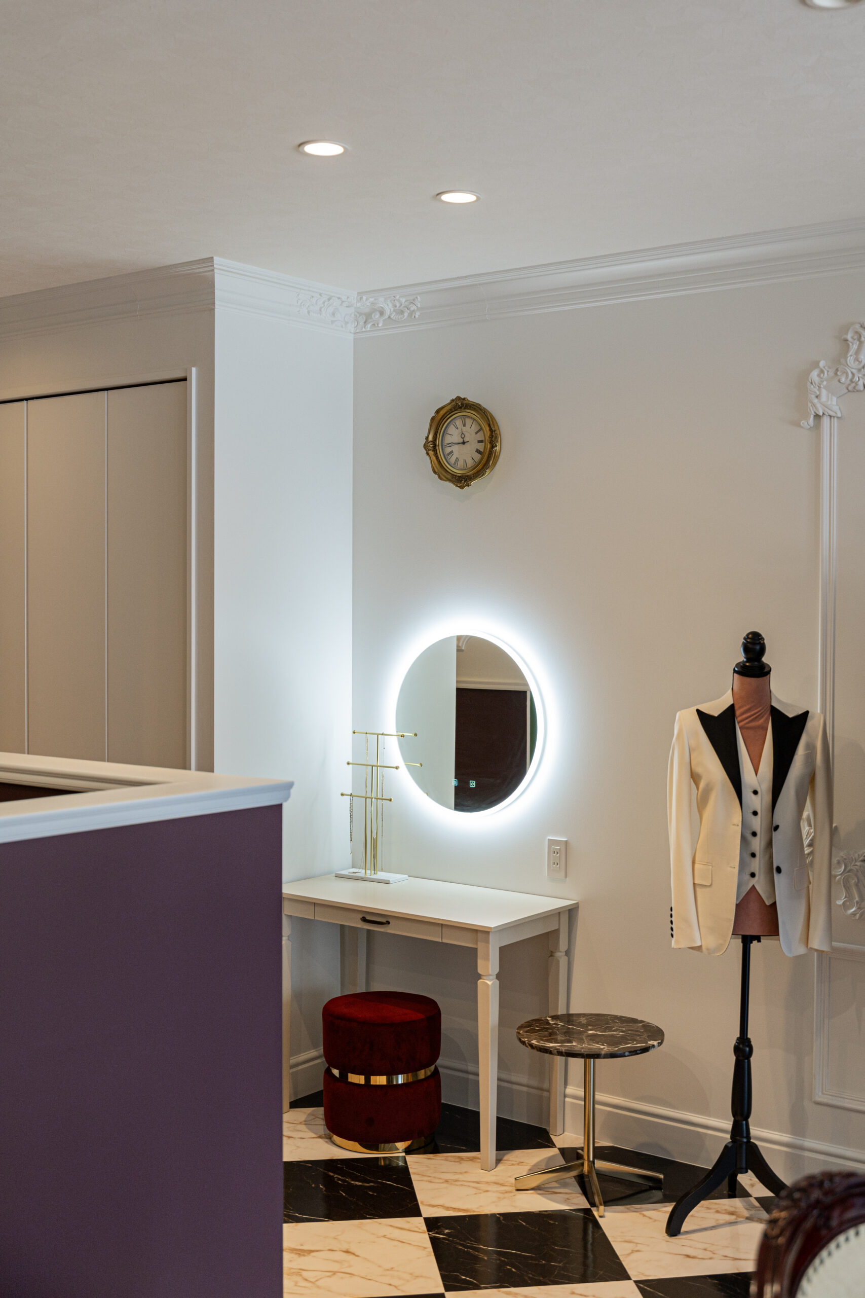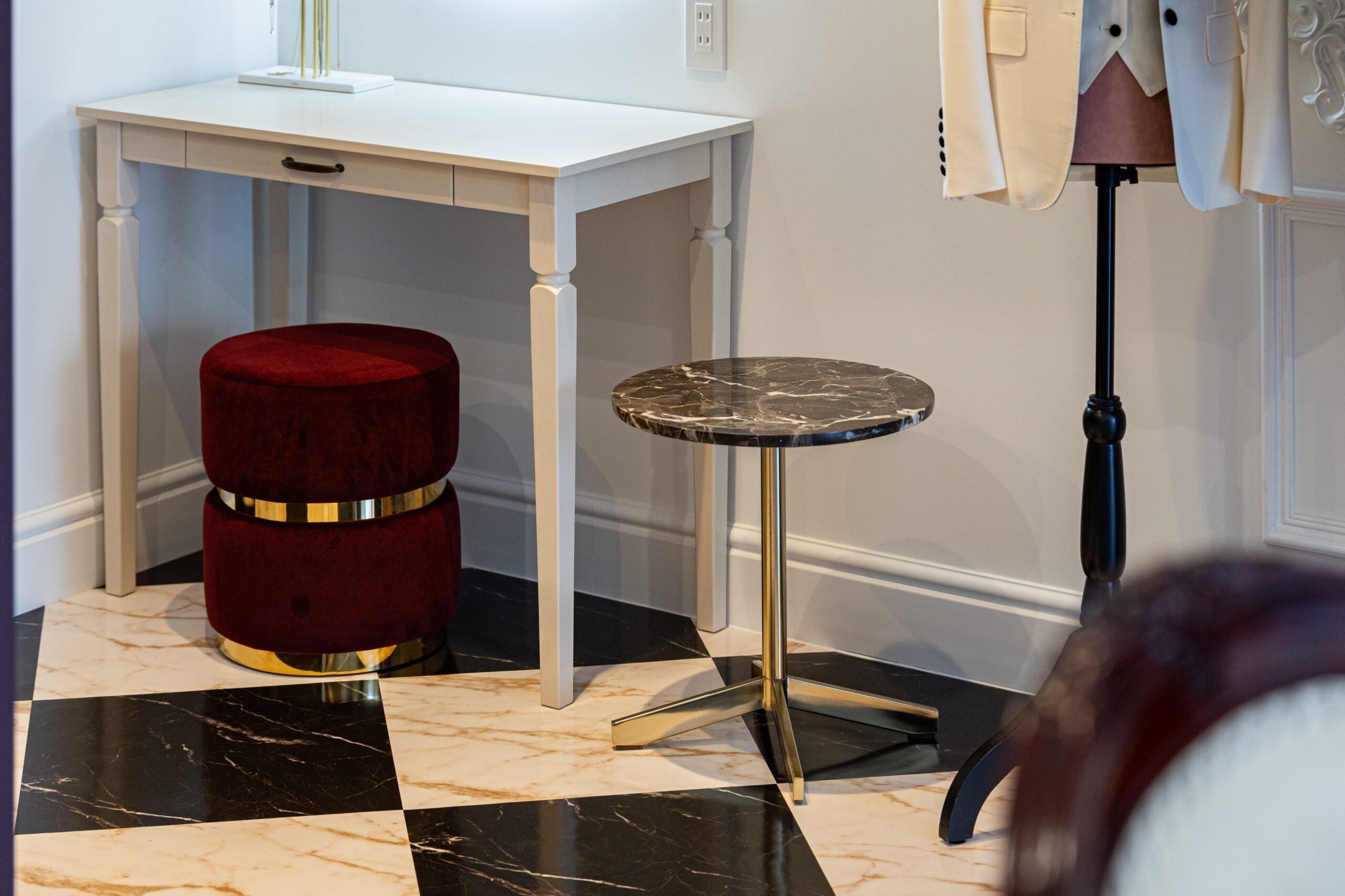 オーナーのLincoさんはスーツという装いを通して夢に挑む女性の背中を押し続けたい。片や私は空間づくりを通してそこで輝き夢を実現する輝く女性をもっと増やしたい。お互いの想いが重なり、「共創」する喜びをまさに感じたプロジェクトでした!