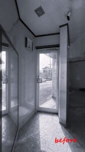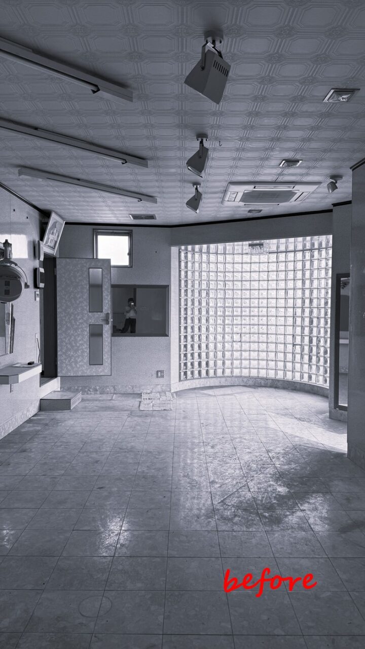 ご紹介いただいた “フードサンシャイン“ 主宰の佐井あかねさんとともに、以前は美容室として使われていた物件を拝見しました。